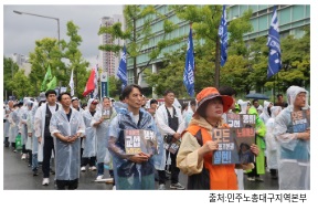 민주노총 결의대회 2025년 9월 12일 오후 3시 “모든 노동자의 노동기본권 실현! 진짜사장 교섭 쟁취! 노정교섭 쟁취! 9.12 민주노총 대구지역본부 결의대회”가 대구지방고용 노동청 앞에서 민주노총 대구지역본부 주최로 열렸다. 노조법 개정으로 하청노동자의 진짜사장과 교섭하는 시대가 열렸고 노동자를 옥죄는 손배가압...